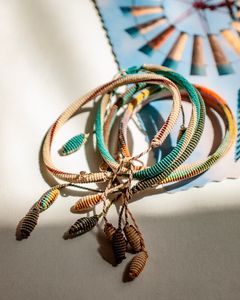 Lekkert håndknyttet armbånd, Life, designet av Charlotte Lynggaardi med tag i 18 k gult gull, fra Ole Lynggaard Copenhagen.